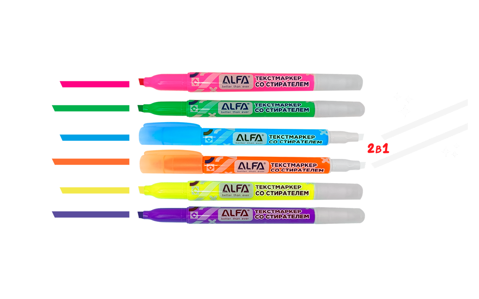 Текстовыделитель со стирателем ALFA 6шт в наборе 1HL001 (1/240)